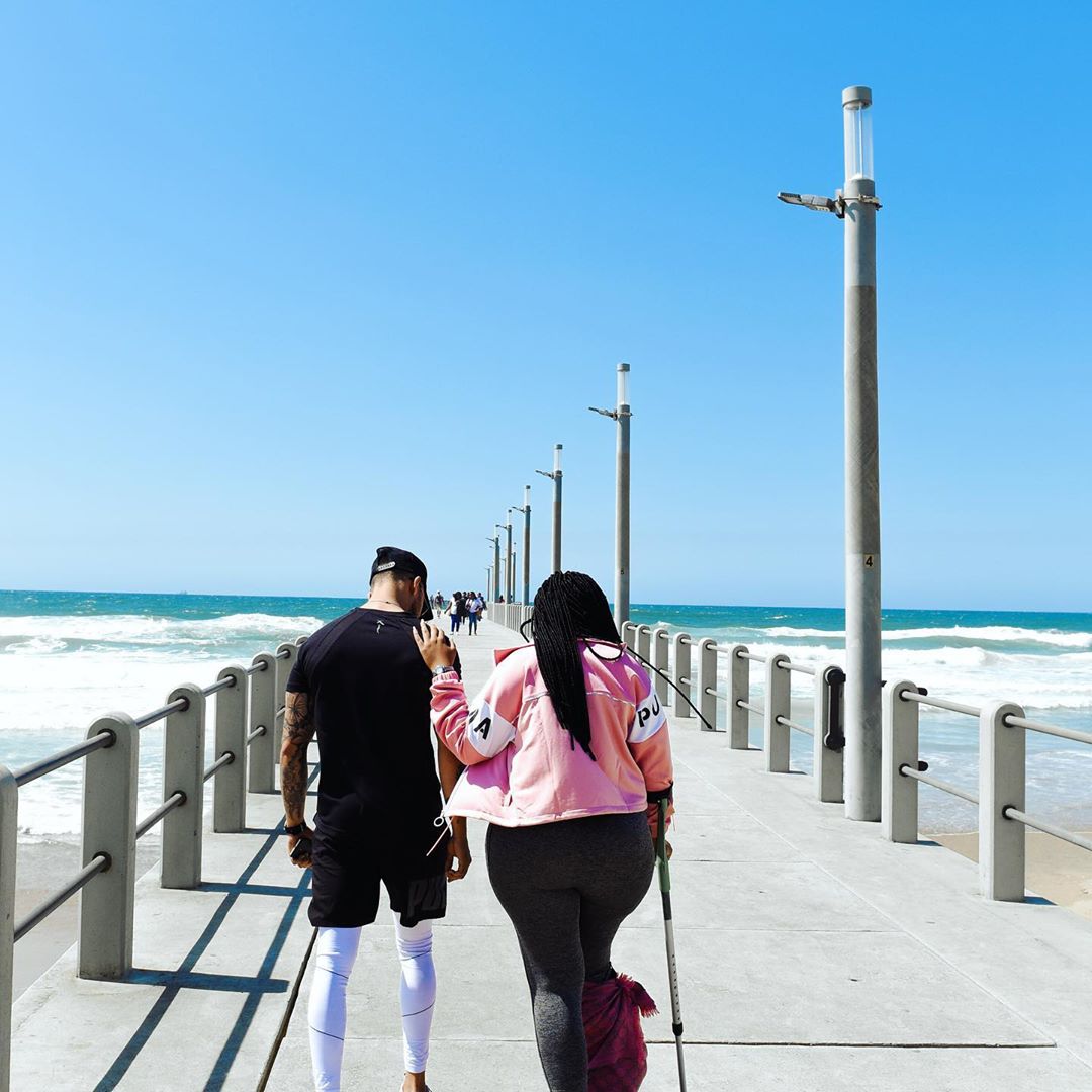 The pair hit the beach in KZN recently, where they exercised on a pier, including doing a young vosho. Sbahle paid tribute to Zain in a series of posts and joked that she wouldn’t recommend him to anyone, for fear of losing him.