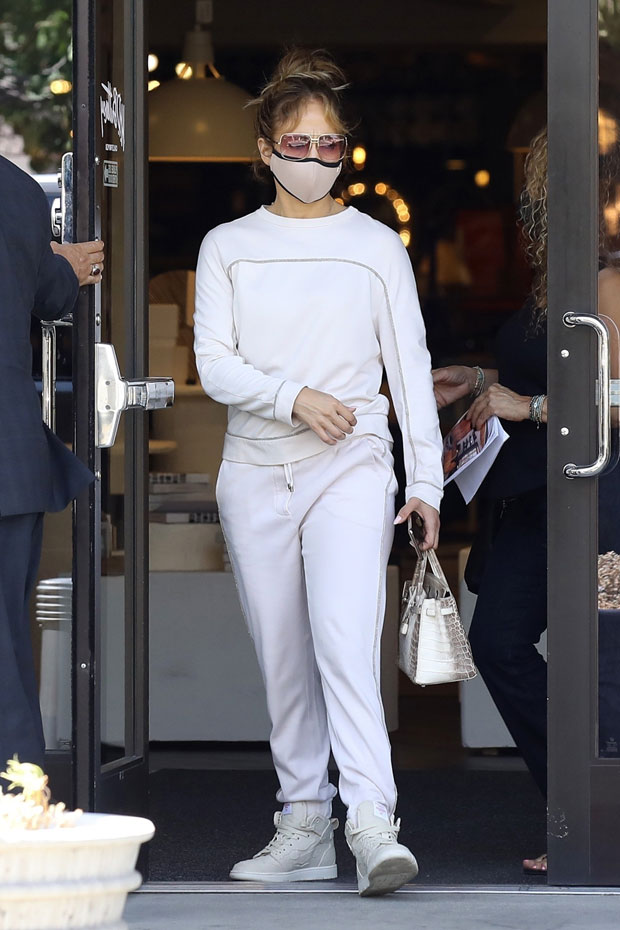 Jennifer Lopez, 52, and Ben Affleck, 48, stepped out separately after dining at Italian hotspot Olivetta in Los Angeles. The “Jenny From The Block” singer kept her all-neutral theme going with a white long sleeve and loose-fitting pants as she hit up a furniture store. She accessorized with her pricey and rare Hermès Himalayan Birkin and sneakers, throwing her highlighted locks into a casual, messy bun. Jennifer was solo as she stepped out of a large black SUV for the shopping excursion, marking one of several furniture store visits in recent months.