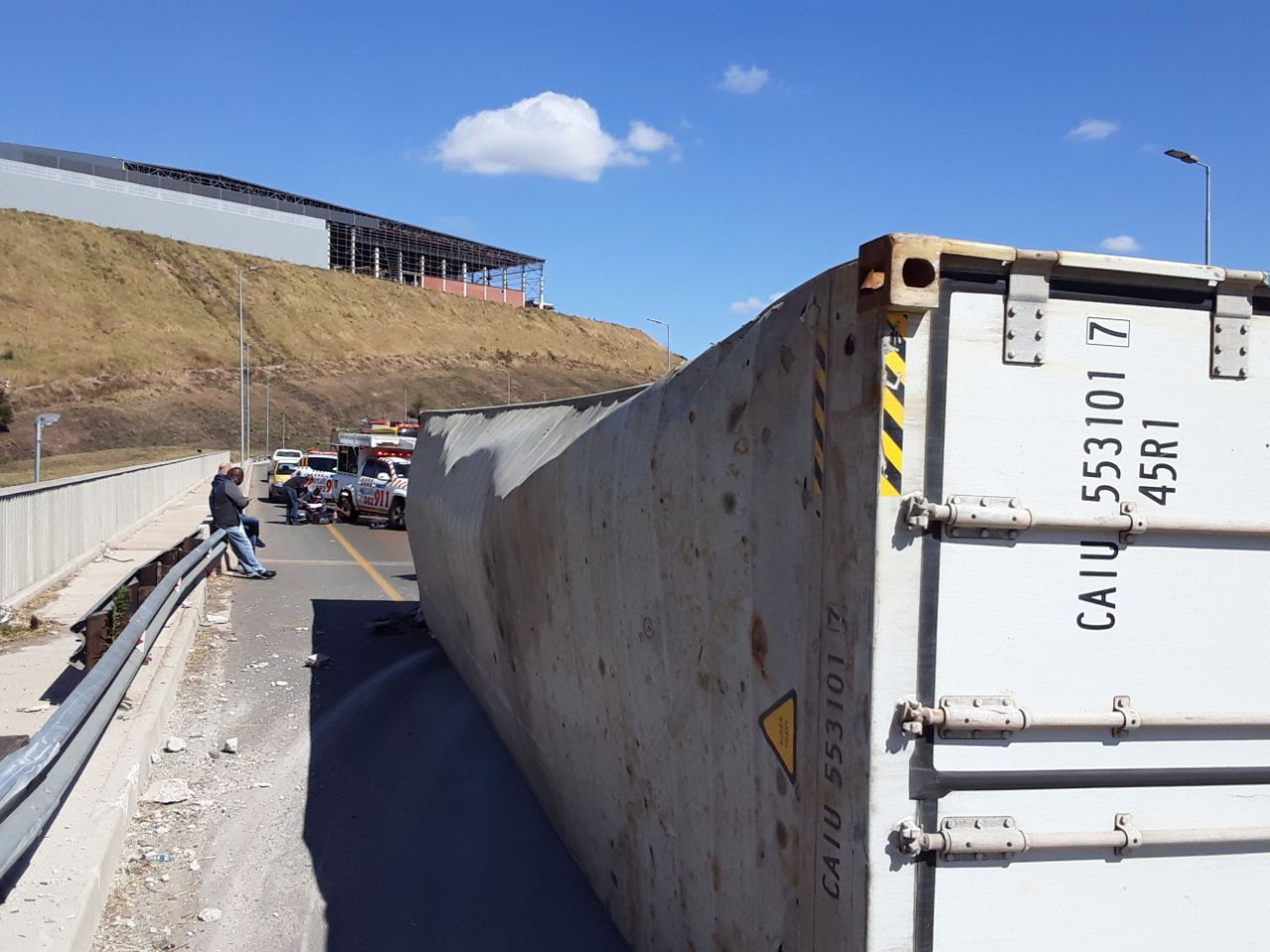 Reports indicate that the driver of a heavy motor vehicle lost control resulting in a rollover.