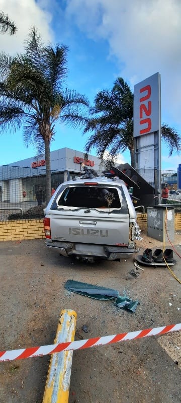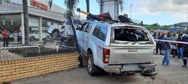 The bakkie then came to rest on top of a wall at a motor dealership.